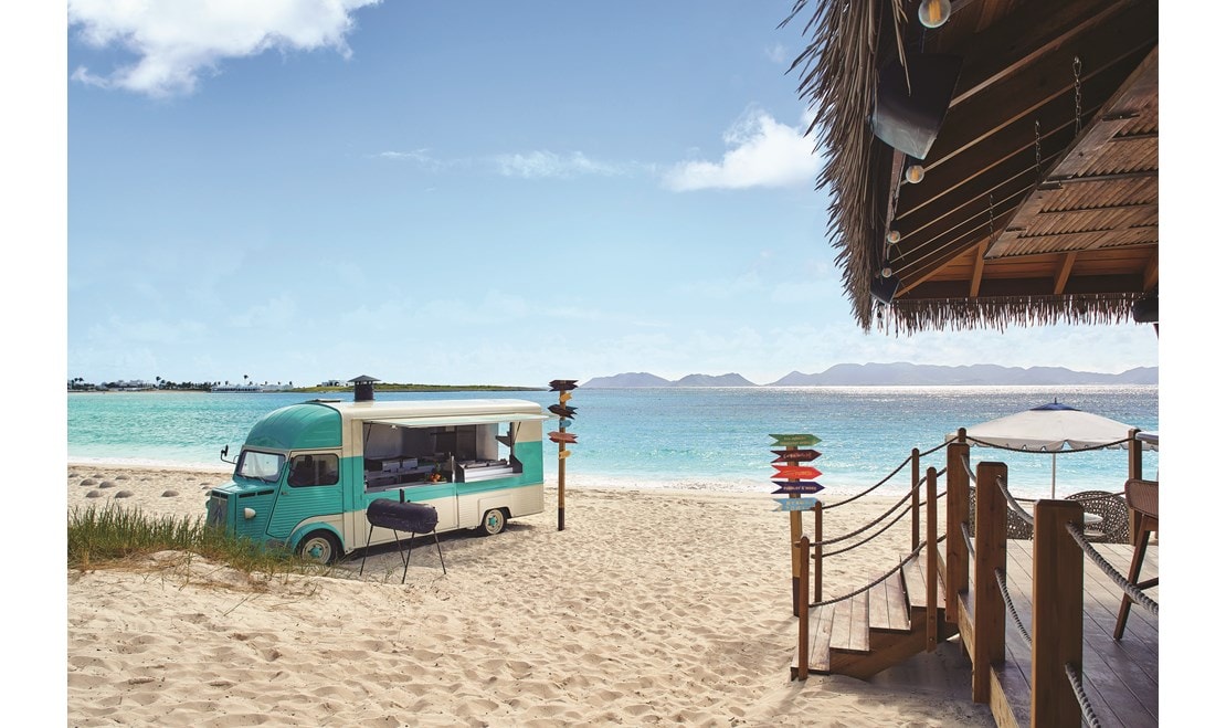 One of Cap Juluca’s new excursions involves setting off in the property’s sea blue vintage Volkswagen van to explore the island’s 33 beaches. Guided by one of the resort’s hosts, no detail is overlooked for a perfect beach day, outfitted with beach chairs, towels, a stocked drink cooler, and a Polaroid camera to capture candid shots from the day. A gourmet picnic lunch will be set up filled with à la carte menu items such as a smoked salmon poke bowl or lobster sandwich. As the sun sets, guests can opt for a champagne toast as they sit back and watch the horizon on the cruise back to Maundays Bay.